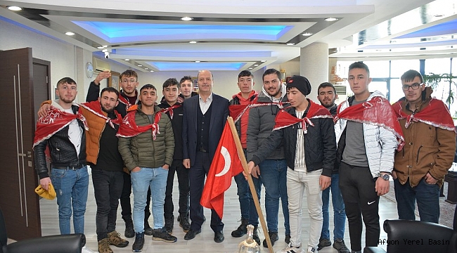 Kadim İlçemiz Şuhut’tan vatani hizmetini yerine getirmek için askere gidecek olan gençler belediye başkanı Recep Bozkurt’u makamında ziyaret etti.
