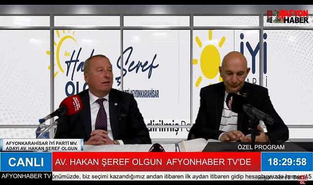 Afyonkarahisar İyi Parti Milletvekili Adayı Avukat Hakan Şeref Olgun, Gazeteci Yüksel Elçi’nin hazırlayıp sunduğu Özel Gündem Programında Afyonhaber Tv, Armoni Fm (98.1) ve Afyon Yerel Basın ortak yayınına konuk oldu.