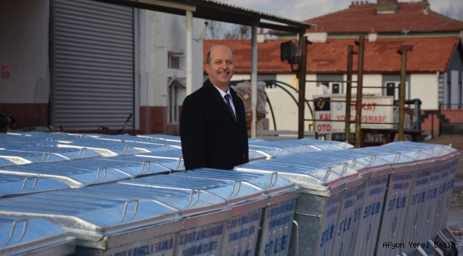 Şuhut Belediye Başkanı Recep Bozkurt’un girişimleriyle Sıfır Atık projesi kapsamında Şuhut Belediyesine 90 adet çöp konteyneri hibe edildi.