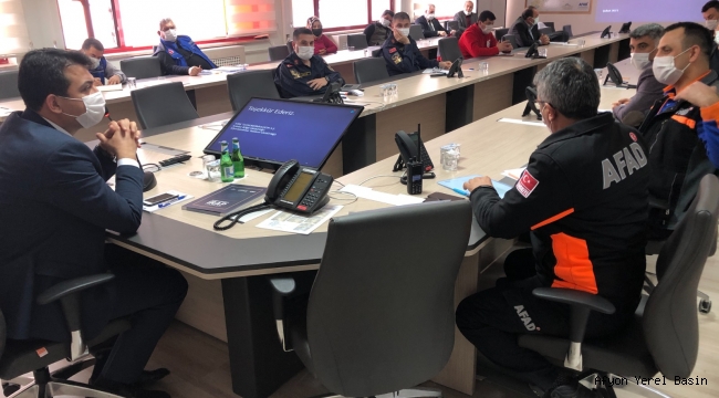İl AFAD Müdürü Mehmet BULDAN’da toplantıda yaptığı konuşmada, “afet ve acil durumların ne zaman, ne şiddet ve büyüklükte meydana geleceğini kestiremiyoruz. Bunun için özel çalışma gerekiyor. Kurumların normal çalışmalarının dışında olağanüstü durumlara hazırlıklı olmaları gerekiyor. Tamamen sıfırıncı dakika itibari ile en son nokta iyileştirme çalışmaları bitene kadar Türkiye Afet Müdahale Planı kapsamında da Afyonkarahisar’da İl Afet Müdahale Planı hazırlanmıştır. 26 Yerel Düzey Çalışma Grupları da Operasyon planlarını bu bağlamda yaptılar. Biz 5-6 yıldır Afyon’da diğer çalışma grupları ile beraber hem eşgüdüm içerisinde hem de Valiliğimiz koordinasyonu dâhilinde istenilen seviyede çalışmalar yürütmeye gayret ediyoruz.”Dedi