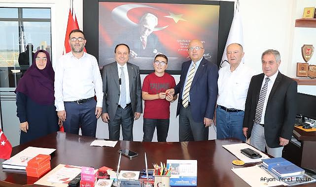 Ülke düzeyinde yapılan sınav ve yarışmalarda Afyonkarahisar’ı en iyi şekilde temsil eden öğrencilere, Afyon Eğitim Vakfı tarafından ödül verildi. Afyonkarahisar Ticaret ve Sanayi Odası hizmet binasında bulunan Afyon Eğitim Vakfı’nda düzenlenen törene AEV ve ATSO Yönetim Kurulu Başkanı Hüsnü Serteser, İl Genel Meclisi Başkanı ve AEV İkinci Başkanı Burhanettin Çoban, AEV Yönetim Kurulu ve ATSO Meclis Üyesi Metin İplikçioğlu, AEV Genel Sekreteri Murat Diker ile LGS Türkiye Birincisi olan Onur Yılmaz, Coriobu Dünya Matematik Şampiyonu Seyyid Battal ve aileleri katıldı.Ödül töreninde konuşan AEV Yönetim Kurulu Başkanı Hüsnü Serteser, “Afyon Eğitim Vakfı, bildiğiniz gibi maddi imkanları kısıtlı başarılı yüksek öğrenim gören Afyonlu öğrencilerimize burs vermektedir. 2021-2022 öğretim yılında 662 üniversite öğrencimize burs desteği sağladık” dedi.Serteser, konuşmasına şöyle devam etti:“Afyon Eğitim Vakfı olarak her konuda Afyonkarahisarlı öğrencilerin yanında olmaya çalışıyoruz. Bu kapsamda bu yıl dereceleriyle bizi gururlandıran, Mareşal Fevzi Çakmak Ortaokulu öğrencimiz LGS Türkiye Birincisi olan Onur Yılmaz ile TUBİTAK Bilgisayar Bölümünde yarı finale yükselen ve Coriobu Dünya Matematik Şampiyonu olan Dinar BİLSEM öğrencisi Seyyid Battal’ı ödüllendirmek istedik. Kendilerini, hep yanında olan ailelerini ve öğretmenlerini de kutlamak isterim. Seyyid’in hem sosyal bilgiler hem de rehber öğretmeni olan Sema Karakaş’ı da ilgisinden dolayı ayrıca kutluyorum. Vakfımız bundan sonra da her seviyede başarılı öğrencilerimizin yanında olacaktır.”Ödül töreni, fotoğraf çekiminin ardından sona erdi.
