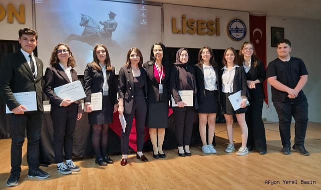 Afyon Lisesi tarih öğretmeni Nida Millik koordinatörlüğünde öğrenciler Resul Murat Sarıtaş, Bilge Kuru, Süeda Sağlam, Güneş Akşit ve Sevde Kılınç'a katılım belgeleri takdim edildi.