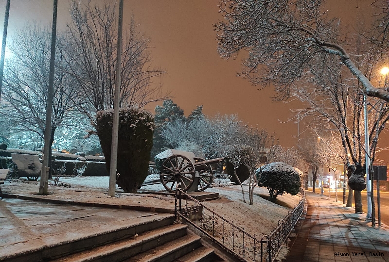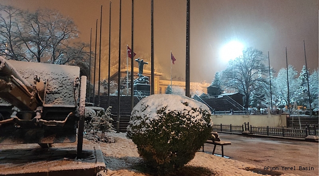 Afyonkarahisar'da etkili olan kar yağışı nedeniyle kent merkezi beyaz'a büründü.