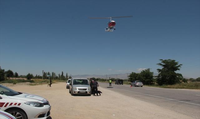 Kurban Bayramı tedbirleri kapsamında Jandarma Genel Komutanlığı envanterine katılan hava aracı "Cayrokopter" ile Afyonkarahisar'da trafik denetimi gerçekleştirildi.