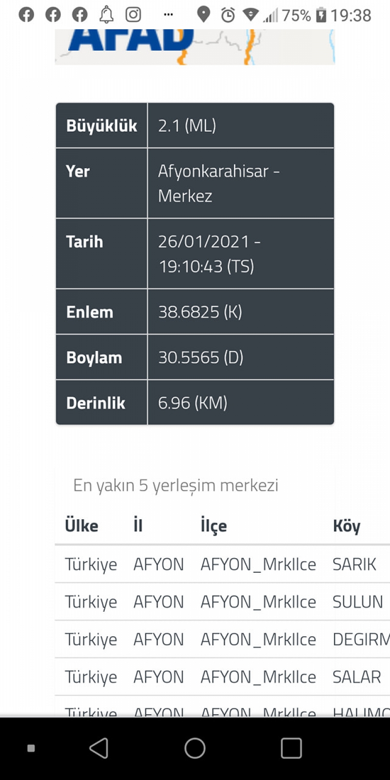 Saat 19.10'da Afyonkarahisar Merkezde 2.5 büyüklüğünde, 14.4 km. derinliğinde deprem meydana geldi.Kandilli Rsathanesinin bildirdiğine göre depremin merkez üssü Afyonkarahisar Büyükkalecik!