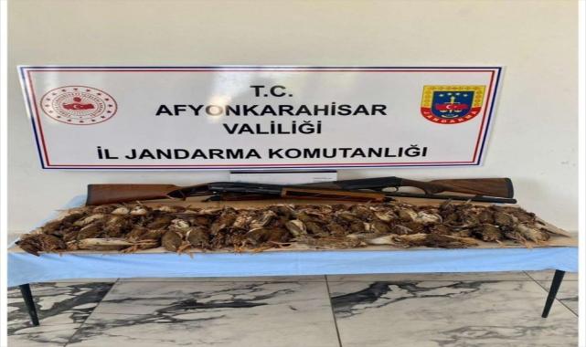 Afyonkarahisar'da kaçak avlanan 2 kişiye, 73 bin 150 lira para cezası kesildi.İl Jandarma Komutanlığı ekipleri, merkeze bağlı Karaaslan köyü Göller mevkisinde kaçak bıldırcın avlandığı bilgisi üzerine harekete geçti.Ekiplerin bölgede durdurdukları bir araçta kaçak avlanan 77 bıldırcın ile ruhsatsız av tüfeği ele geçirildi.Doğa Koruma ve Milli Parklar ekipleri, araçtaki avcılık belgesi olmayan S.K. ile S.Y'ye toplam 73 bin 150 lira idari para cezası kesti.