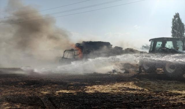 Afyonkarahisar'ın Sandıklı ilçesinde saman balyası yüklü kamyonda çıkan yangın söndürüldü.Erdal D, Sandıklı-Hocalar kara yolunun 2. kilometresinde kamyona saman balyası yükledi. Kamyon tarladan çıkacağı sırada sulama kuyusuna ait elektrik kablolarına saman balyalarının temas etmesiyle yangın çıktı.Bunun üzerine Sandıklı İtfaiyesi ekiplerinden yardım istendi. İtfaiye ekipleri ve iş makinelerinin müdahalesiyle yangın söndürüldü.Saman balyaları yanarken, kamyon da kullanılamaz hale geldi.