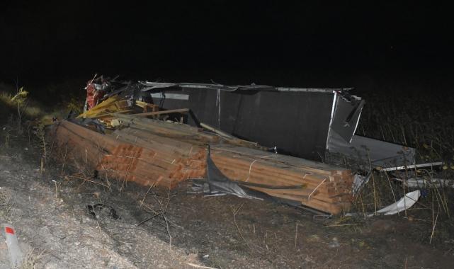 Afyonkarahisar'ın İhsaniye ilçesinde, şarampole devrilen kereste yüklü tırın sürücüsü hayatını kaybetti.H.K. (54) idaresindeki 32 ACL 069 plakalı tır, Afyonkarahisar-Kütahya kara yolu Osmanköyü yakınlarında şarampole devrildi.Kazada, devrilen tırın altında kalan sürücü yaşamını yitirdi.İhbar üzerine kaza yerine sağlık, jandarma, polis, itfaiye ve AFAD ekipleri sevk edildi.Yapılan incelemenin ardından tırın altından çıkarılan H.K'nin cenazesi, morga kaldırıldı.