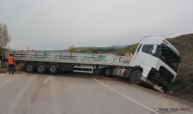 Afyonkarahisar- Kütahya kara yolunda devrilen tır yüzünden araç kuyruğu oluştu
