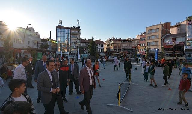 “Amatör Spor Haftası” münasebetiyle ilçemizde yapılan kutlamalar, 15 Temmuz Demokrasi Meydanında, Kaymakam Mehmet Sülün, Belediye Başkanımız Dr. Mustafa Çöl, İlçe Gençlik Spor Müdürü Murat Araz, sporcular ve hemşehrilerimizin katılımıyla gerçekleşti. Değişik yaş gruplarında ve farklı branşlardaki sporcu kardeşlerimizin katılımıyla yapılan “Amatör Spor Haftası” etkinliklerini inceleyen Kaymakam Mehmet Sülün ve Belediye Başkanımız Dr. Mustafa Çöl, İlçe Gençlik Spor Müdürü Murat Araz’dan konuyla ilgili bilgiler alarak yapılan çalışmalardan dolayı kendilerine teşekkür ettiler.İlçe Gençlik Spor Müdürü Murat Araz burada yaptığı açıklamada; Kaymakam Mehmet Sülün’ün ve Belediye Başkanımız Dr. Mustafa Çöl’ün kendilerine vermiş oldukları destekler sayesinde Sandıklımızda kısa sürede önemli atılım yaptıklarına dikkat çekerek, “Sandıklıda Spor Bambaşka” sloganı ile çıktıkları yolda adeta bir sporcu fabrikası haline gelmeye başladıkları ifade ederek, bu hizmetlerde kendilerine destek veren herkese bununla birlikte ekibine teşekkür ettiler.Kaymakam Mehmet Sülün ve Belediye Başkanımız Dr. Mustafa Çöl 15 Temmuz Demokrasi Meydanında kurulan spor istasyonlarında sporcu kardeşlerimize destek olmak için, hünerlerini sergileyerek kısa bir maç yaptılar.Kazananın dostluk olması temennisiyle biten “Amatör Spor Haftası” etkinlikleri çekilen hatıra fotoğrafı ile sona erdi.