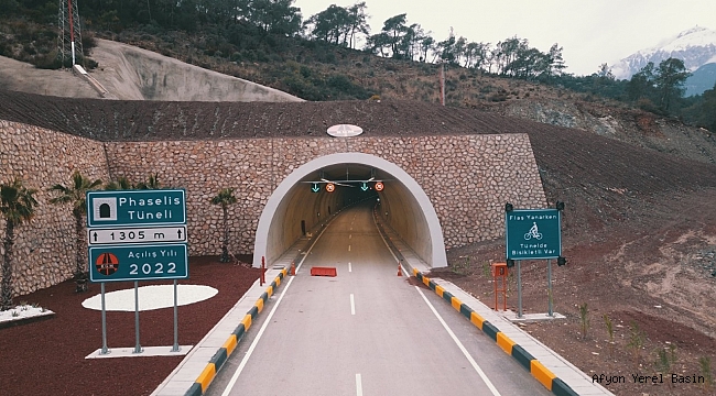 “Phaselis Tüneli, taşıt trafiğine 2x2 şeritli, bitümlü sıcak karışım kaplamalı bölünmüş yol standardında hizmet verecek. phaselis tüneli ile büyük oranda dağlık yapıya sahip mevcut güzergahın ulaşım standardının artırılması amaçlandı. Tünel projesi ile bölgedeki trafik akışı önemli ölçüde rahatlatıldı. her yıl milyonlarca turistin ziyaret ettiği Antalya ilinin batısında bulunan Demre, Finike, Kumluca, Kemer, Kaş, Kalkan gibi ilçelere erişim kolaylığı sağlandı. Ayrıca, bölge ekonomisinde önemli yer tutan ürünlerin iç ve dış piyasalara konforlu ve kısa sürede taşınması imkanı tesis edildi. Güzergahta 1,9 kilometre, seyahat süresinde ise 5 dakika kısalma sağlayan tünel ile zamandan 11,1 milyon TL, akaryakıttan 8,9 milyon TL olmak üzere yıllık toplam 20 milyon TL tasarruf edilecek, karbon emisyonu 1.842 ton azaltılacak.”
