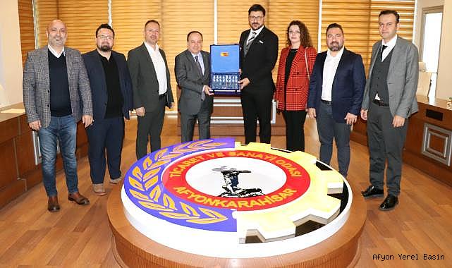 Antalya Ticaret Platformu Derneği Yönetim Kurulu Başkanı Muhteşem Kabasakal, Yönetim Kurulu Başkan Yardımcıları İsmail Ekmekçioğlu ve İbrahim Murat Elbeyi, Yönetim Kurulu Genel Sekreteri Beyza Nur Cebeci, Yönetim Kurulu Üyeleri Erdem Akkoca, Rafet Arslan ve Ali Torun, Afyonkarahisar Ticaret ve Sanayi Odası Yönetim Kurulu Başkanı Hüsnü Serteser’i ziyaret etti. Ziyarette Afyonkarahisar ve Antalya’nın ekonomileri hakkında görüş alışverişinde bulunuldu; iki şehrin yatırım potansiyeli değerlendirildi. Ziyaret, karşılıklı hediye takdiminin ardından sona erdi.