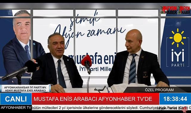 İYİ Parti Afyonkarahisar Milletvekili Adayı Mustafa Enis Arabacı Gazeteci Yüksel Elçi’nin hazırlayıp sunduğu Özel Gündem Programında Afyonhaber Tv, Afyonyerel Basın ve Armoni Fm (98.1) ortak yayınına konuk oldu.