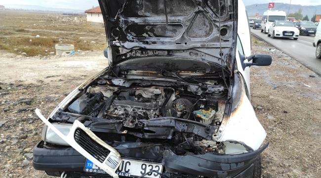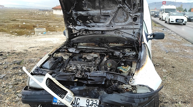 42 UC 933 Plakalı araç seyir halindeyken yanmaya başladı. Araç'ın içinden çıkıan şöför ufak yangın tüpü ile her ne kadar müdahale etsede aracın yanmasına engel olamadı.