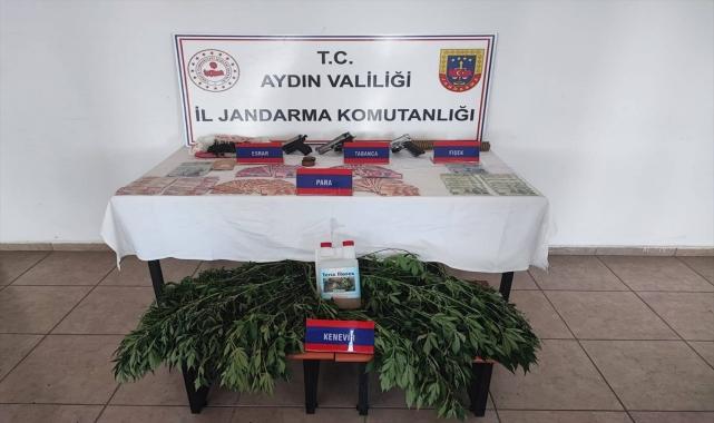 Aydın'ın Kuşadası ilçesinde düzenlenen operasyonda sahte para ve uyuşturucu ele geçirildi. İl Jandarma Komutanlığı ekipleri, Değirmendere Mahallesi'nde S.A'nın evine operasyon düzenledi. Ekipler yaptığı aramada, toplam 40 bin 180 liraya karşılık hazırlanmış sahte banknotlar, 320 gram kubar esrar, 43 kök kenevir bitkisi, esrar öğütme aparatı, 2 ruhsatsız tabanca ile kurusıkı tabanca ele geçirildi.S.A, gözaltına alındı.