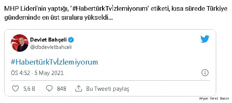MHP Lideri'nin yaptığı, ''#HabertürkTvİzlemiyorum'' etiketi, kısa sürede Türkiye gündeminde en üst sıralara yükseldi...
