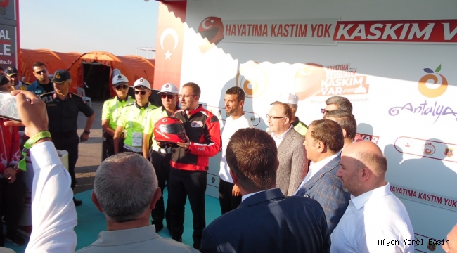 Kasapoğlu, Antalya Emniyet Müdürlüğü tarafından alanda açılan "Hayatıma Kastım Yok Kaskım Var" standını ziyaret ederek bilgi aldı.