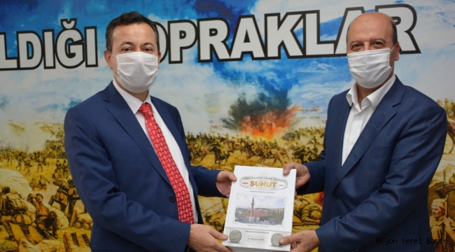 2013-2016 yılları arasında Şuhut Kamakamlığı görevlerinde bulunan şimdi ise İçişleri Bakanlığı Mülkiye Başmüfettişliği görevini yürüten Ferdi ferit görükmez Şuhut Belediye Başkanı Recep Bozkurt’a ziyaret gerçekleştirdi.Ziyerete Şuhut Kaymakamı Erkan Kaçmaz da eşlik etti.Şuhut Belediye Başkanı recep bozkurt ziyaretten duyduğu memnuniyeti dile getirerek Baş Müfettiş Görükmez’e Şuhut Belediyesi Kültür Yayınlarının son ürünü olan Şuhut Tarihi Kitabını hediye etti.Ferit görükmez Şuhut Belediye Başkanı Recep Bozkurt’a misafirperverlikleri için teşekkür edip ‘’Şuhut’ta kendimi evimde hissettiren dostlarıma teşekkür ederim’’dedi.Ziyaret hatıra fotoğrafının çektirilmesiyle son buldu.
