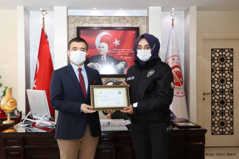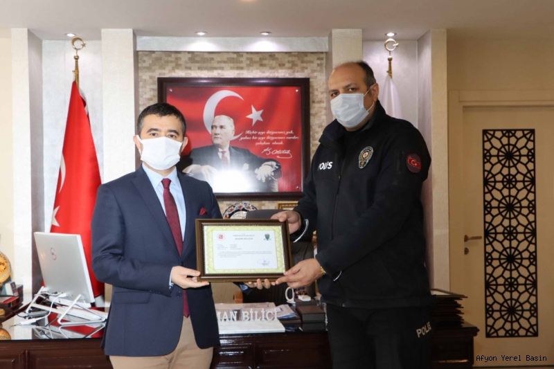 Kaymakam Bilici, son günlerde yapılan operasyonlarda; fuhuş, kaçak alkol ve uyuşturucu maddelerinin yakalanmasında başarı gösteren polisleri tebrik ederek, başarı belgesi takdim etti.