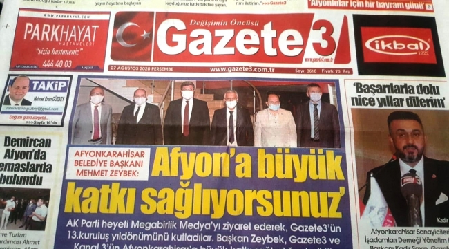 13 Yıl önce yayın hayatına başlayan, Afyonkarahisar'dan Dünya'ya açılan pencere Kanal 3 Tv ve gazete 3 ile Afyon Basınımızın gözbebeği Gazetete 3, 13 yaşına girdi.