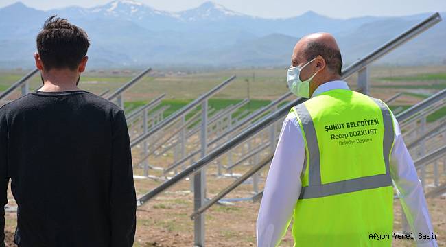 Şuhut Belediye Başkanı recep bozkurt Şuhut Belediyesine ait olan güneş enerji santrali inşaat sahasını ziyaret etti.