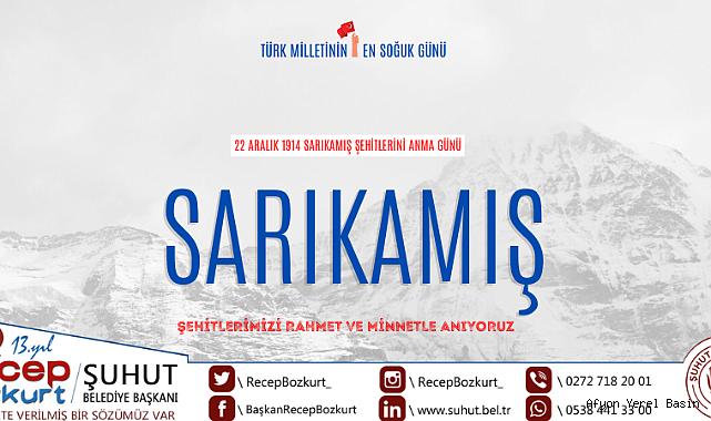 Sarıkamış’ın Türk toplumunun her kesimini derinden etkileyen acı bir hatıra olduğunu belirten Belediye Başkanımız Recep Bozkurt mesajında, “Birinci Dünya Savaşında Kafkas Cephesinde yaşanan ilk ve en büyük kara harekâtı olarak tarihe geçen Sarıkamış Harekâtı, zor hava şartlarına aldırmadan vatanları için donarak can veren 90 bin askerimizin şahadete erdikleri bir hadise olarak hafızalarımıza kazınmıştır. Bu harekât bizlere Mehmetçiğin vatanı için her koşulda gözünü kırpmadan mücadeleye hazır olduğunu bir kez daha göstermiştir. Memleketin dört bir yanından gelen bu kahraman askerlerimiz olabilecek en zor koşullarla karşı karşıya kalmalarına rağmen tereddüt etmeden vatan için mücadele etmişlerdir. Bu mücadelenin kutsallığı ve kahraman askerlerimizin cesareti bizlere de büyük sorumluluklar yüklemiştir. Bugün de bizler bu fedakârlığın bilincinde olarak onların izinde birlik ve beraberlik içerisinde vatan için her koşulda çalışmak durumundayız. Bu vesileyle Sarıkamış’ta ve yurdun her köşesinde kahramanlık örneği göstererek adını tarihe yazdıran tüm şehitlerimize Cenab-ı Allah’tan rahmet diliyor şükran ve minnetle anıyorum. Ruhunuz şad mekanınız cennet olsun.” İfadelerini kullandı.