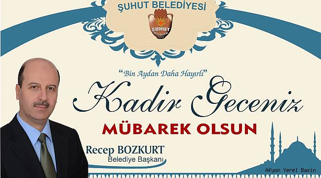 Şuhut Belediye Başkanımız Recep Bozkurt, Kadir Gecesi münasebetiyle bir mesaj yayınladı.