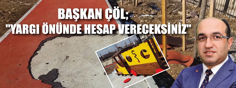 Başkan Çöl; "ilçemizi daha yeşil bir görünüme kavuşturmak için yeni yapımına başladığımız Miilet Bahçesinde , çocuklarımıza nitelikli oyun alanları oluşturmak için inşa ettiğimiz, vatandaşlarımızın ortak kullanım alanı olan parklara zarar veren kişi veya kişiler ile ilgili gerekli tahkikat başlatıldı. Kamu malına zarar vermekten gerekli hukuki süreci başlatacağız” dedi.