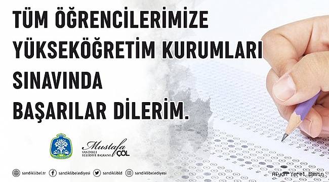 Başkan mustafa Çöl bu hafta sonu tüm yurtta yapılacak olan Yükseköğretim Kurumları Sınavı (YKS)’na girecek öğrenci kardeşlerimize başarılar dileklerinde bulunarak bir destek mesajı yayınladı.