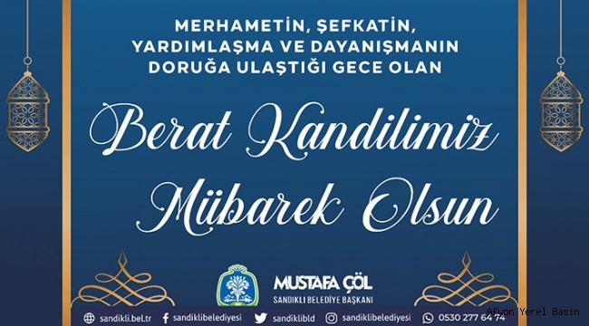 Sandıklı Belediye Başkanı Mustafa Çöl Ramazan-ı Şerif ayının habercisi mübarek Berat Kandili dolayısıyla bir kutlama mesajı yayınladı.
