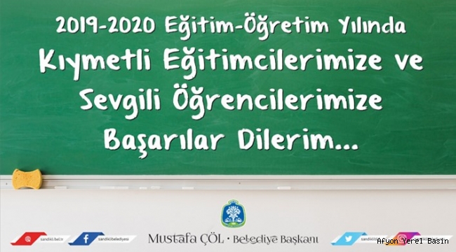 Sandıklı Belediye Başkanı Mustafa Çöl, bugün başlayan 2019/2020 Eğitim ve Öğretim yılı münasebetiyle bir mesaj yayınladı.