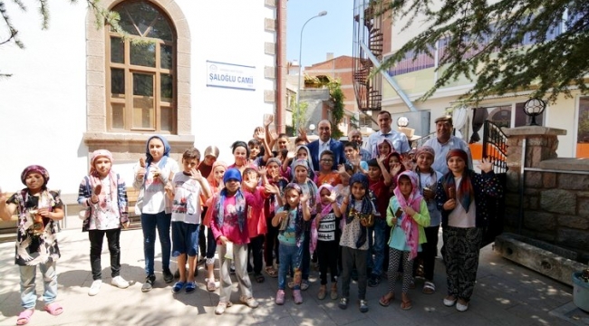 Sandıklı Belediye Başkanımız Mustafa Çöl, camilerimizde gerçekleştirilen yaz kuran kurslarını ziyaret ederek öğrencilerimize dondurma hediye etti.Hamamönü, Şaloğlu ve Şirinevler camilerini ziyaret eden Başkan Mustafa Çöl, burada cami görevlileri nezaretinde yapılan derslere katıldılar. Ders sırasında çocuklarımızla sohbetler ederek öğrendikleri sureleri beraberce tekrar eden Başkan Çöl, ders bitiminde kendilerine sürpriz yaparak getirdikleri dondurmaları çocuklarımıza ikram ettiler.Cami çıkışı çocuklarımız ve görevlilerimiz ile birlikte hatıra fotoğrafı çektirmeyi ihmal etmeyen Başkan Mustafa Çöl, cami ziyaretlerinin devam edeceğini ve çocuklarımıza hediyeler göndereceğinin altını çizdi.