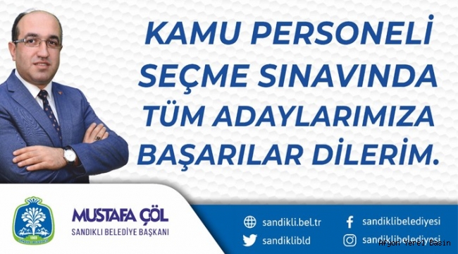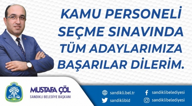Sandıklı Belediye Başkanı Mustafa Çöl, 6 Eylül 2020 Pazar günü yapılacak olan Kamu Personel Seçme Sınavı (KPSS)’na gireceklere başarılar diledi.