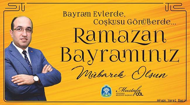 Sandıklı Belediye Başkanı Mustafa Çöl, milletçe birlik ile beraberliğimizi göstermeye imkân veren bir Ramazana Bayramına daha ulaşmanın mutluluğu ve sevincini hep birlikte yaşadıklarının altını çizerek şu ifadelere yer verdi.“Rahmet, merhamet ve bereket ayı olan mübarek Ramazan-ı Şerif’i geride bırakarak, muhabbetle kaynaştığımız bir bayrama daha ulaşmış bulunuyoruz.Yaşamımızı zenginleştiren ve renklendiren bayramları, insanların birbirine yakınlaşması, kaynaşması, üzüntülerin yerini sevincin alması, kardeşlik ve dostluk bağlarının canlanması, birliğimizin daha da güçlenmesi için önemli birer fırsat olarak değerlendirmeliyiz.Özellikle İslam coğrafyasında dökülen gözyaşının ve kanın son bulmasını, Filistin’de Müslüman kardeşlerimize yapılan eziyetin yaşanmamasını, Kudüs’ün en kısa zamanda eski mutlu ve huzurlu günlerine dönerek dökülen kanın son bulmasını diliyorum.Bu duygu ve düşüncelerle Ramazan Bayramının tüm insanlığa, İslam âlemine, ülkemize ve ilimize, ilçemize, huzur, mutluluk ve bereket getirmesini diliyorum. Sevdiklerinizle birlikte güzel bir bayram geçirmeniz dileğiyle Ramazan Bayramınızı yürekten kutluyorum.”
