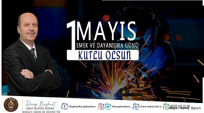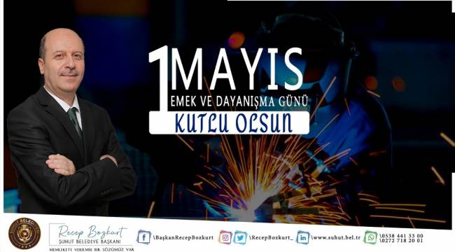 1 Mayıs Emek ve Dayanışma Günü münasebetiyle bir mesaj yayımlayan Şuhut Belediye Başkanı recep bozkurt ”Hayat, insanın talep ve beklentilerini karşılayabilme derecesinde anlam ve değer kazanır.