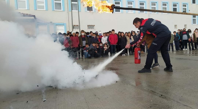 İtfaiye amirliği ekipleri, yapılan tatbikatlarda 'yangın nasıl çıkar, nasıl söndürülür, nasıl kontrol altına alınır' gibi teorik bilgileri öğrencilere aktardı. Okul bahçesinde yapılan canlandırmalarda öğrenciler yangına nasıl müdahale etmesi gerektiğini tecrübe etti.