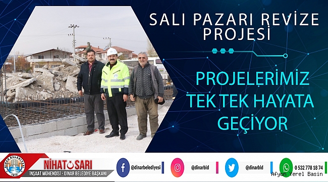Dinar Belediye Başkanımız Nihat Sarı’nın seçim beyannamesinde yer alan Salı Pazarı Revize Projemiz kapsamında yoğurt ve peynir pazarı ile zeytin pazarının inşaatı bugün temel betonun atılması ile birlikte başladı.