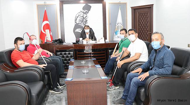 Afyonkarahisar 15 Temmuz Kocatepe Görme Engelliler Gençlik ve Spor Kulübü Başkanı Muhammet Mustafa Başyiğit, Başkan Yardımcısı yusuf Şen ve yönetimi Dinar Belediye Başkanımız Nihat Sarı’ya ziyarette bulunarak talep ve isteklerini ilettiler.