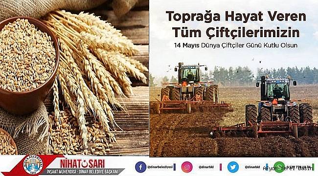 Dinar Belediye Başkanımız Nihat Sarı, 14 Mayıs Çiftçiler Günü dolayısıyla bir mesaj yayımladı.