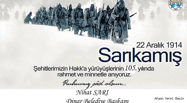 Dinar Belediye Başkanı Nihat sarı Sarıkamış Şehitlerinin 105. Ölüm yıldönümü dolayısıyla bir anma mesajı yayımladı.