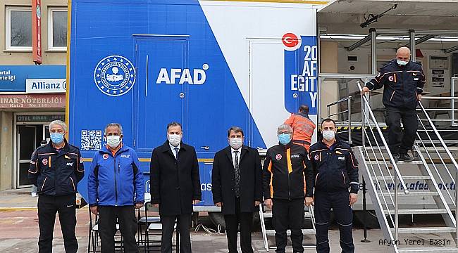 İlçemiz Cumhuriyet Meydanına Ankara AFAD Başkanlığı tarafından gönderilen Deprem Simülasyon tırına İlçe Kaymakamı Selami Kapankaya ve Dinar Belediye Başkanımız Nihat Sarı ziyarette bulundu.