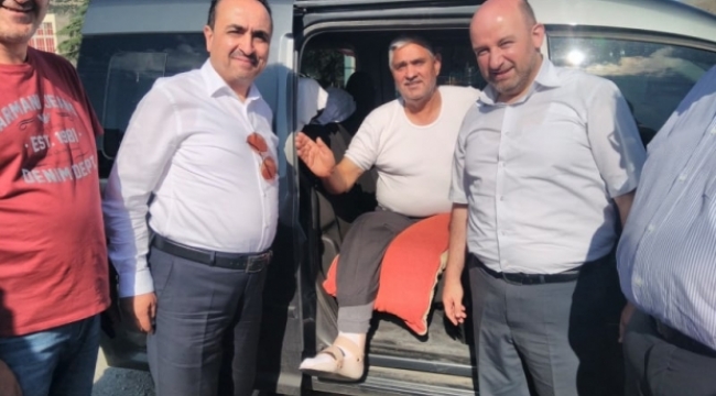 Başkan Şener kırık ayağı ile Özkaldı'yı karşıladı