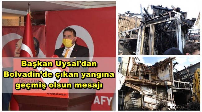 Türkiye Değişim Partisi Afyonkarahisar İl Başkanı Kadir Uysal mesajında “Bolvadin’de çıkan yangından etkilenen tüm Bolvadinli kardeşlerimize geçmiş olsun diliyorum. Cenab-ı Allah tekrarından ve beterinden muhafaza eylesin” dedi.