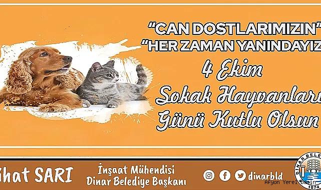 Doğanın dengesinin korumasında hayvanların da rolü bulunduğunu, bu bilinçle hareket edip, çocukları da bu bilinçle yetiştirmek gerekiyor. Belediye olarak "Çocuklarımız Candostlarla Beraber" projemiz kapsamında Bu yıl Milli Eğitim Müdürlüğümüz ile koordineli bir şekilde bu yıl bir farkındalık oluşturarak çocuklarımıza küçük yaşta hayvan sevgisini aşılamak adına Sahipsiz Sokak Hayvanları Bakım ve Geçici Rehabilitasyon Merkezimizde program dahilinde öğrencilerimizi ağırlayacağız. Bu duygu ve düşüncelerle Hayvanlara karşı uygulanan her türlü şiddet ve kötü muamelenin son bulduğu, doğadaki tüm canlıların birlikte uyum içinde yaşaması umuduyla, 4 Ekim Dünya Hayvanları Koruma Günü’nü kutlarım” dedi. Dinar Gündem Gazetesi
