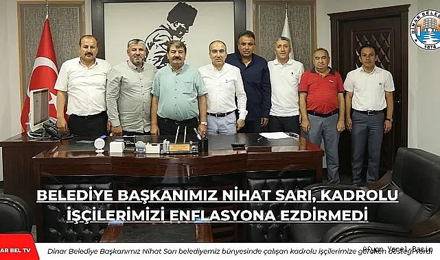 Dinar Belediye Başkanımız Nihat Sarı belediyemiz bünyesinde çalışan kadrolu işçilerimizin yanında olarak enflasyona karşı ezdirmediklerini maaşlarında yapılan artışın personellerimize hayırlı olmasını temenni etti.
