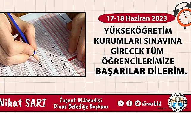 Dinar Belediye Başkanımız Nihat Sarı, 17-18 Haziran tarihlerinde yapılacak olan Yükseköğretim Kurumları Sınavı (YKS) dolayısıyla bir mesaj yayımladı.