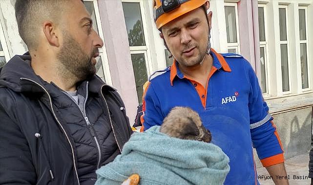 Afyonkarahisar’da bina boşluğuna sıkışan yavru köpeği AFAD ekipleri çıkardı.