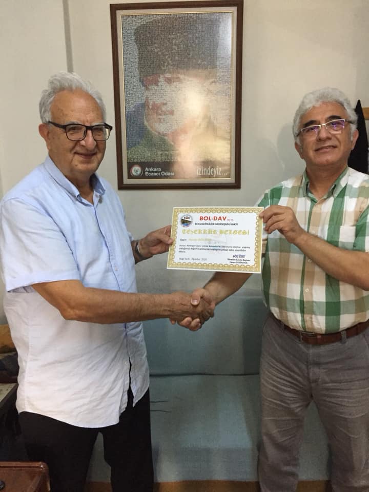 BOL-DAV’a ve BOLVADİNE değerli katkılarından dolayı, Vakfın Yönetim Kurulu Başkanı Hasan DOĞRUYOL Bey tarafından Teşekkürname takdim edildi. Kendilerine Allahtan sağlık sıhhat ve saadetler dileriz.