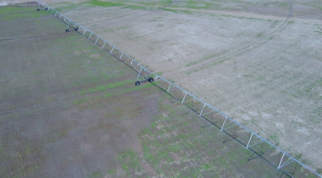 Center Pivot sulama sistemi eğimli arazilerde de çalışabilmekte ve su kullanım randımanı % 90-95' lere ulaşmaktadır. Bölgenin en büyük sistemi olan bu teknoloji İlçemize hayırlı olsun" dedi.