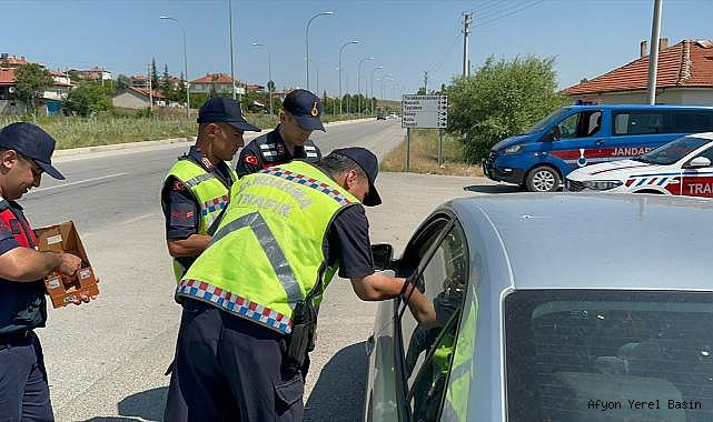 Bolvadin'de Kurban Bayramı tatili süresince trafik denetimi yapıldı.İlçe Jandarma Komutanlığı ekipleri, 9 günlük tatil süresince bölgede yaptığı denetimlerde 512 araç ile 2 bin 821 kişinin Genel Bilgi Taraması (GBT) üzerinde kimlik sorgulaması yapıldı. Denetimde ekipler durdurdukları araçlardaki sürücü ve yolculara su ve meyve suyu başta olmak üzere çeşitli ikramlarda da bulunarak bayramlaştı.